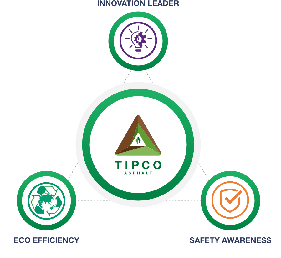 กลุ่มบริษัททิปโก้แอสฟัลท์ มีความมุ่งมั่นและผลักดันให้เกิดการพัฒนาอย่างยั่งยืน เพื่อตอบสนองความคาดหวังของกลุ่มผู้มีส่วนได้เสียตลอดห่วงโซ่คุณค่าทางธุรกิจ ตามแนวทางของการสร้างคุณค่าร่วม ทั้งด้านเศรษฐกิจ สังคม และสิ่งแวดล้อม โดยมีการบริหารความเสี่ยงองค์กร การกำกับดูแลกิจการที่ดีและการพัฒนาบุคลากร เพื่อให้พนักงานมีความพร้อมต่อสภาพการเปลี่ยนแปลงที่เกิดขึ้นอยู่เสมอ และสร้างนวัตกรรมขับเคลื่อนองค์กรให้เติบโตและดำเนินธุรกิจอย่างยั่งยืนในระยะยาว