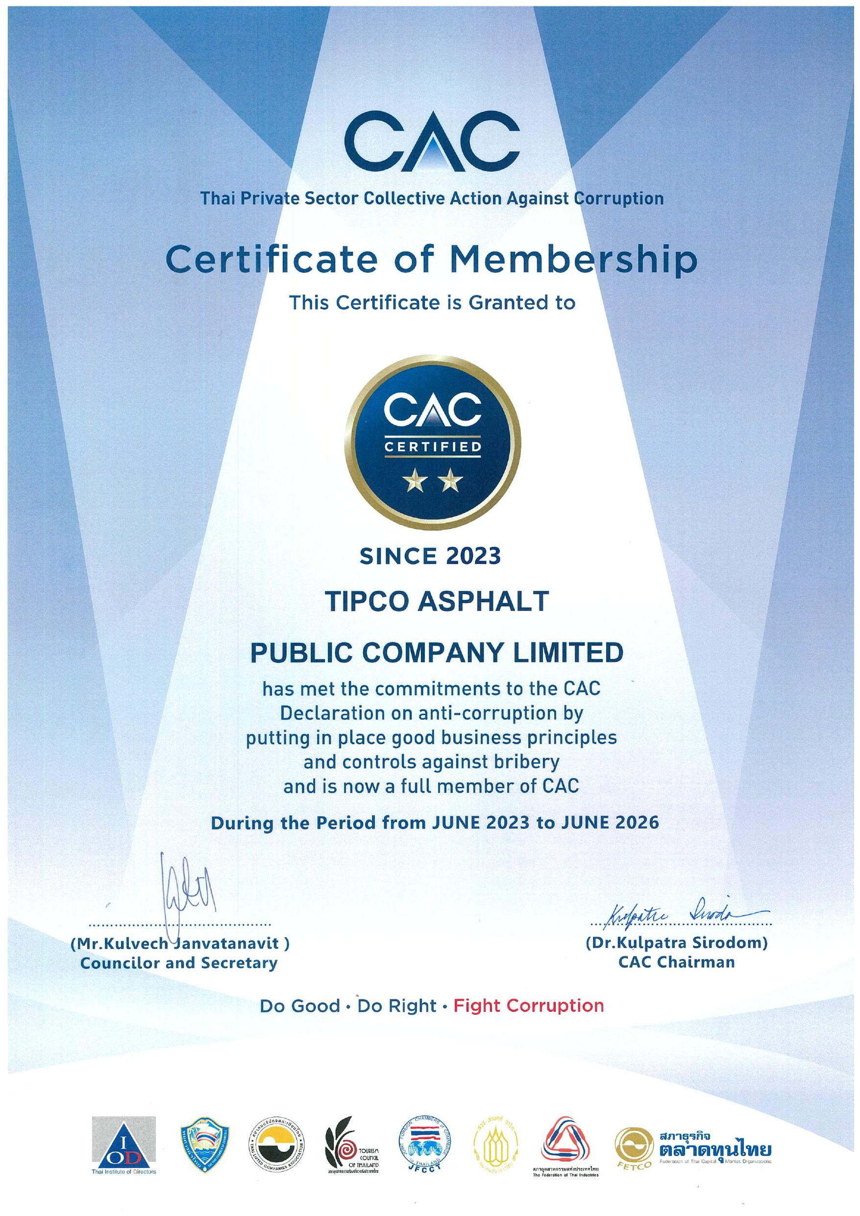 ได้รับการรับรองเป็นสมาชิกภาพของแนวร่วมต่อต้านคอร์รัปชันของภาคเอกชนไทย