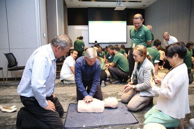 ในวันที่ 23 สิงหาคม ที่ผ่านมา ส่วนงานการพัฒนาอย่างยั่งยืนได้มีการจัดอบรมพิเศษ ภายใต้โครงการ “Hands 2 Heart: CPR for Life” การอบรมทักษะการช่วยชีวิตขั้นพื้นฐานครั้งนี้จัดเป็นภาษาอังกฤษ ให้กับคณะผู้บริหารระดับสูง ผู้บริหาร ผู้จัดการจากประเทศต่างๆ และพนักงานด้านความปลอดภัยจากฝ่ายปฏิบิติการในประเทศไทย และบริษัทลูกในต่างประเทศ การจัดอบรมในครั้งนี้ได้รับความร่วมมือจากกลุ่มพนักงานอาสาสมัครของเราที่ได้ผ่านการอบรมและได้รับประกาศนียบัตรจากคณะกรรมการมาตรฐานการช่วยชีวิต สมาคมแพทย์โรคหัวใจแห่งประเทศไทย ในหลักสูตรทักษะการช่วยชีวิตขั้นพื้นฐาน