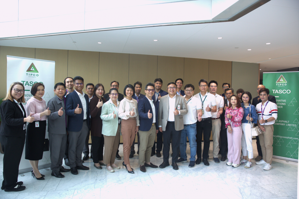 On April 5, 2024, Tipco Asphalt Group warmly welcomed the management team and staff from Don Muang Tollway Public Co., Ltd. to visit and receive an overview presentation of Tipco Asphalt Group’s businesses and the practices for driving sustainable business covering all 3 dimensions: Environmental, Social, and Governance (ESG). Don Muang Tollway Public Co., Ltd. has long been a key partner of the Construction Business of Tipco Asphalt Group, demonstrates confidence in our quality and standards-compliant services provided in road construction. Hence, exchanging experiences is crucial in promoting stable and sustainable growth for both of us.