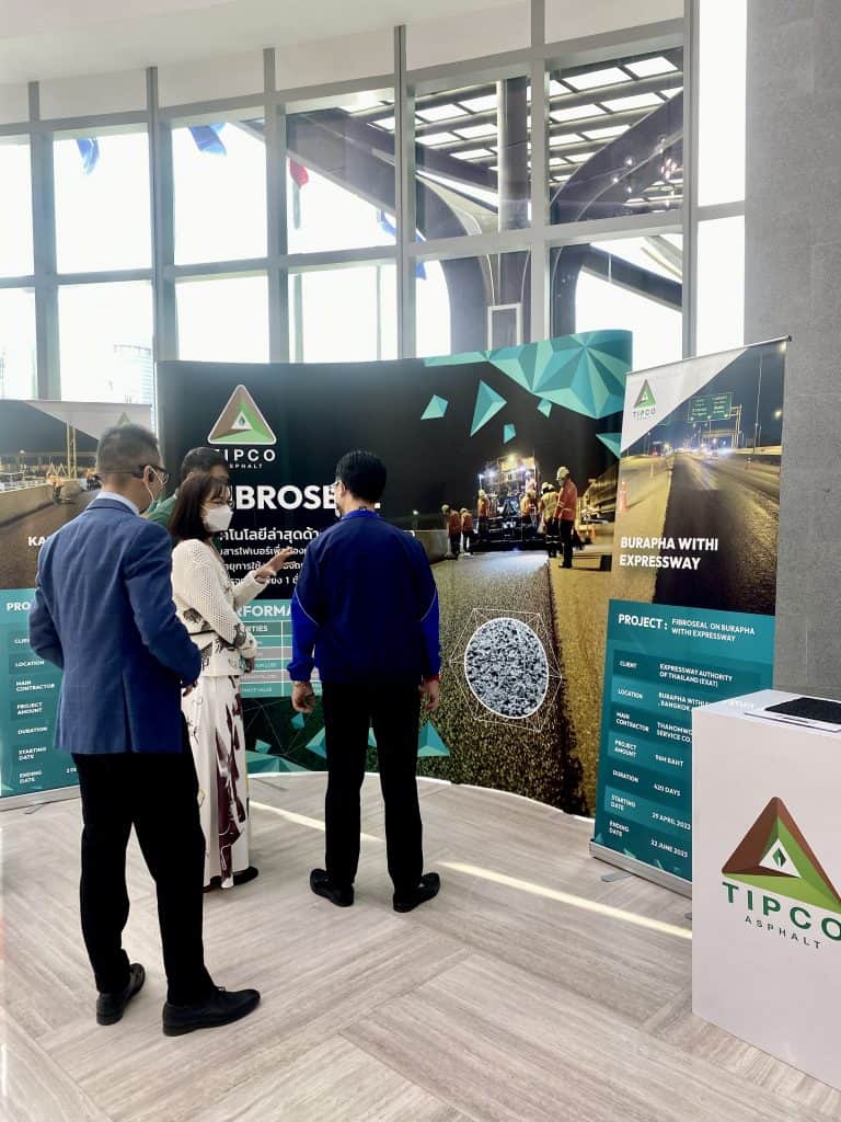 เมื่อวันที่ 13 กันยายน 2565 ที่ผ่านมา บริษัท ทิปโก้แอสฟัลท์ จำกัด (มหาชน) ได้เข้าร่วมงานประชุมสัมมนาที่การทางพิเศษแห่งประเทศไทย เพื่อนำเสนอและให้ความรู้เทคโนโลยีล่าสุดในการฉาบผิวทางที่เรียกว่า “FIBROSEAL” แสดงให้เห็นถึงความเป็นผู้นำด้านการวิจัย คิดค้นผลิตภัณฑ์ และเทคโนโลยีใหม่ๆ เพื่อตอบสนองความต้องการของประเทศในตลาดยางมะตอย ในงานสัมมนามีผู้ว่าการทางพิเศษแห่งประเทศไทยเป็นประธานเปิดงานและได้เยี่ยมชมบูธของบริษัท โดยในบูธได้แสดงให้เห็นถึงข้อดีในการฉาบผิวทางด้วย “FIBROSEAL” ซึ่งจะช่วยลดการหลุดร่อนของเม็ดหิน ยืดอายุการใช้งาน ต้านทานการลื่นไถล ช่วยเพิ่มความปลอดภัยให้กับผู้ใช้รถใช้ถนนมากยิ่งขึ้น รวมไปถึงได้จัดแสดงโครงการที่บริษัท ถนอมวงศ์บริการ จำกัด ได้ทำงานให้กับการทางพิเศษแห่งประเทศไทย บนทางพิเศษกาญจนาภิเษก (บางพลี – สุขสวัสดิ์) และทางพิเศษบูรพาวิถี