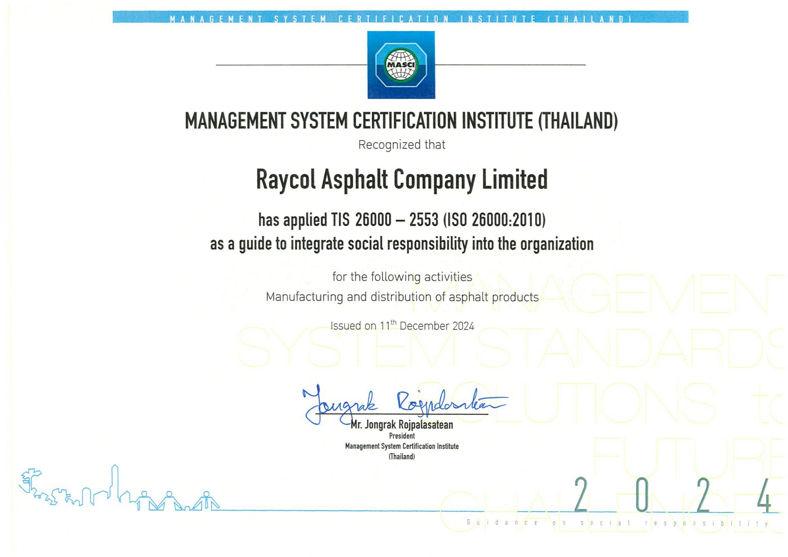Certification ISO 26000:2010 Raycol Asphalt Company Limited
