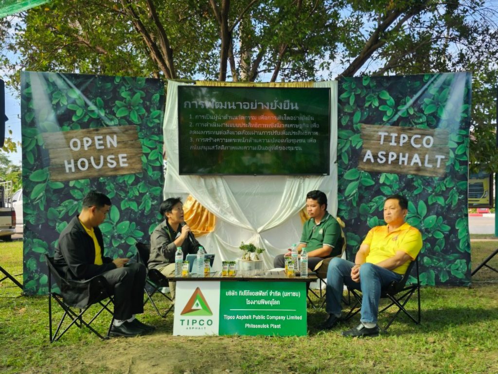 เมื่อวันที่ 16 ธันวาคม พ.ศ. 2567 บริษัท ทิปโก้แอสฟัลท์ จำกัด (มหาชน) โรงงานพิษณุโลก ได้จัดกิจกรรม Open House ประจำปี 2567 ภายใต้ Theme “Tipco Asphalt Go Green” โดยมีวัตถุประสงค์เพื่อสื่อสารให้ผู้มีส่วนได้เสียรับทราบถึงการดำเนินธุรกิจขององค์กร มาตรการป้องกันและลดผลกระทบจากการดำเนินการต่างๆ กิจกรรมเพื่อสังคมที่องค์กรดำเนินการในรอบปีที่ผ่านมา แลกเปลี่ยนข้อมูลและรับฟังความคิดเห็น และในครั้งนี้บริษัทฯ ยังได้รับเกียรติจากท่านผู้อำนวยการกลุ่มพัฒนาการส่งเสริมอุตสาหกรรมชุมชน ศูนย์ส่งเสริมอุตสาหกรรมภาคที่ 2 และ นายกเทศมนตรีตำบลบางระกำเมืองใหม่ เข้าร่วมพูดคุยในกิจกรรมเสวนาหัวข้อ “บทบาทและการมีส่วนร่วมเพื่อต่อสู้วิกฤติโลกร้อน” เพื่อให้ผู้มีส่วนได้เสียที่เข้าร่วมกิจกรรมได้เห็นถึงบทบาทและความมุ่งมั่นในการแก้ไขปัญหาภาวะโลกร้อนของแต่ละภาคส่วนอย่างเป็นรูปธรรมอีกด้วย ในกิจกรรมครั้งมี บุคคลภายนอก หน่วยงานราชการ ชุมชนฯ เข้าร่วมทั้งหมด 59 คน และ พนักงานเข้าร่วมทั้งหมด 33 คน