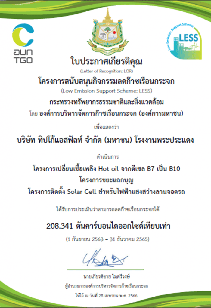 5 เมษายน 2566 | โครงการคัดแยกขยะด้วยแนวคดิ 3Rs เพื่อการใช้ทรัพยากรที่มีอยู่อย่างคุ้มค่า สามารถช่วยลด ปริมาณขยะให้น้อยลง ด้วยการลดการใช้การนํากลับมาใช้ซ้ำ และการนําขยะกลับมาใช้ใหม่ (Reduce Reuse and Recycle: 3Rs) วัตถุประสงค์เพื่อลดปริมาณขยะภายในโรงงาน ซึ่งได้มีการจัดเตรียมถังขยะแต่ละประเภท ติดตั้งแต่ละพื้นที่ภายในโรงงาน เพื่อรองรับการคัดแยกขยะรีไซเคิลและมีพื้นที่การจัดเก็บรวมที่พื้นที่ธนาคารขยัน 3Rs เพื่อบริหารจัดการขยะต่อไป จากการดำเนินกิจกรรมนี้สามารถลดการปลดปล่อยก๊าซเรือนกระจกได้ 7,715.19 กิโลกรัมคาร์บอนไดออกไซด์เทียบเท่า (1 มกราคม 2565 – 31 ธันวาคม 2565)