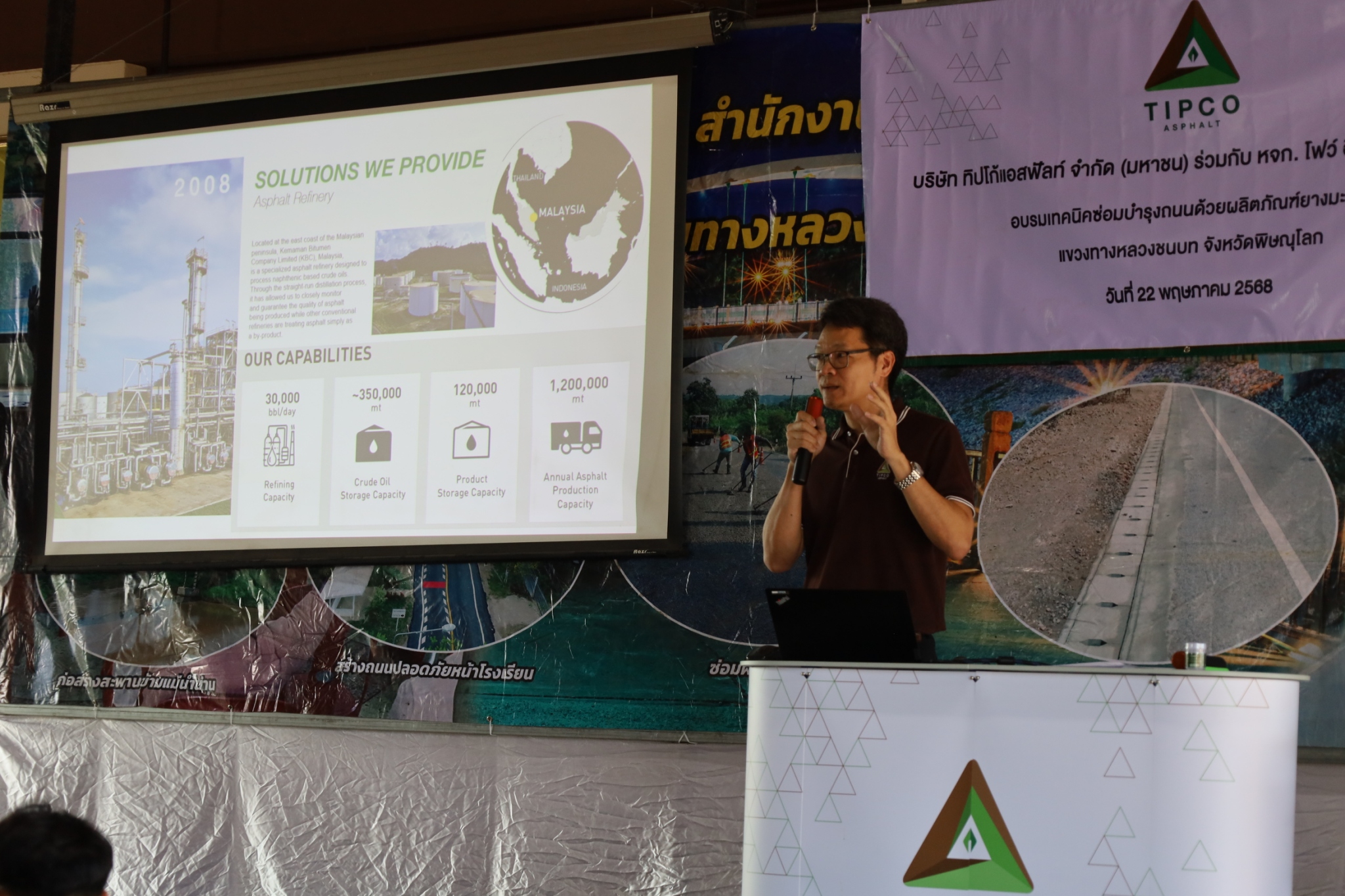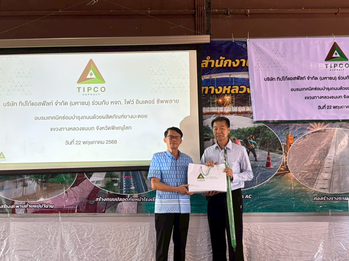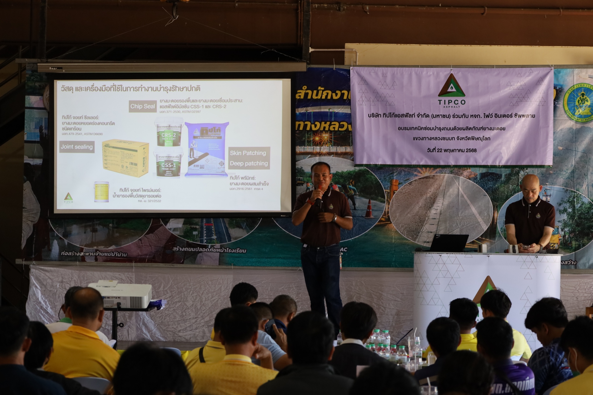 เมื่อวันที่ 22 พฤษภาคม 2568 บริษัท ทิปโก้แอสฟัลท์ จำกัด (มหาชน) ร่วมกับ หจก.โฟว์ อินเตอร์ ซัพพลาย จัดอบรมให้ความรู้แกกองช่าง องค์กรปกครองส่วนท้องถิ่น ในหัวข้อ “เทคนิคซ่อมบำรุงถนนด้วยผลิตภัณฑ์ยางมะตอย” ณ แขวงทางหลวงชนบท จังหวัดพิษณุโลก โดยมีหัวหน้ากองช่าง เจ้าหน้าที่ช่าง และวิศวกร จากเทศบาล อบจ. และ อบต. ต่าง ๆ ในเขตจังหวัดพิษณุโลก เข้าร่วมจำนวนกว่า 120 คน