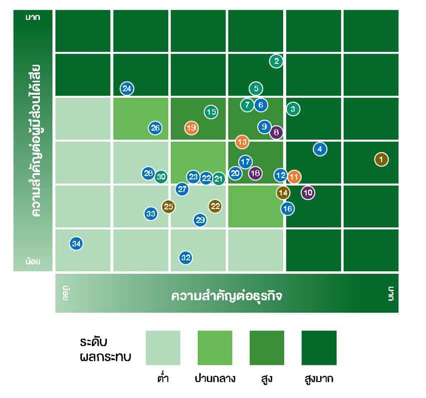 การวางกรอบการพัฒนาอย่างยั่งยืน จำเป็นต้องมีความเข้าใจและรับรู้ถึงความสัมพันธ์และการพึ่งพิงกันระหว่างธุรกิจของกลุ่มบริษัทฯ และกลุ่มผู้มีส่วนได้เสีย ทั้งในด้านเศรษฐกิจ สังคม และสิ่งแวดล้อม โดยคำนึงถึงวัตถุประสงค์และความคาดหวังของกลุ่มผู้มีส่วนได้เสียต่างๆ