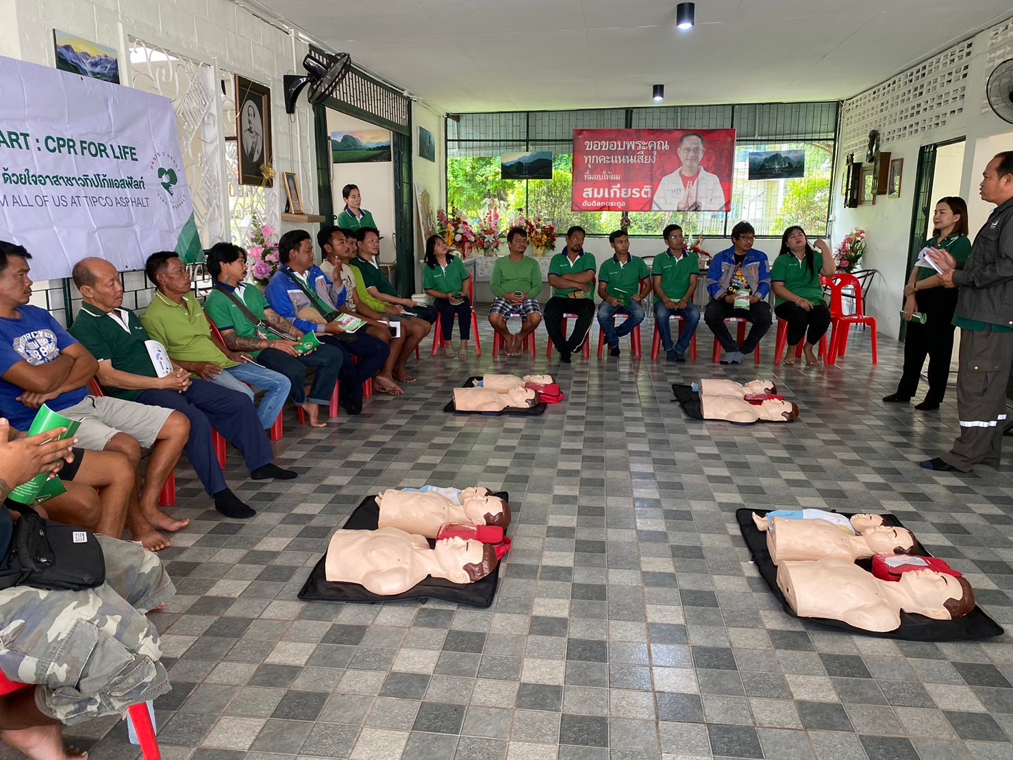 วันที่ 25 ตุลาคม พ.ศ. 2566 บริษัท ทิปโก้แอสฟัลท์ จำกัด โรงงานนครราชสีมา ได้ดำเนินโครงการ เสริมสร้างความปลอดภัยให้ลูกค้า Road Safety for All บริษัท ช.มิตรยนต์ จำกัด จ.นครราชสีมา โดยการถ่ายทอดความรู้การช่วยฟื้นคืนชีพให้ผู้ที่หยุดหายใจขั้นพื้นฐาน ผ่านโครงการ HANDS 2 HEARTS : CPR FOR ALL โดยให้ลูกค้าฝึกปฏิบัติ CPR และการใช้เครื่อง AED เพื่อปลูกฝังแนวความคิดพร้อมสร้างจิตสำนึกเรื่องการปฐมพยาบาลเบื้องต้น เพื่อลดการสูญเสียชีวิตจากภาวะหัวใจหยุดเต้น มีพนักงานเข้าร่วม 8 ท่าน ผู้มีส่วนได้เสีย 19 ท่าน และค่าใช้จ่ายในการดำเนินโครงการ รวม 5,000 บาท