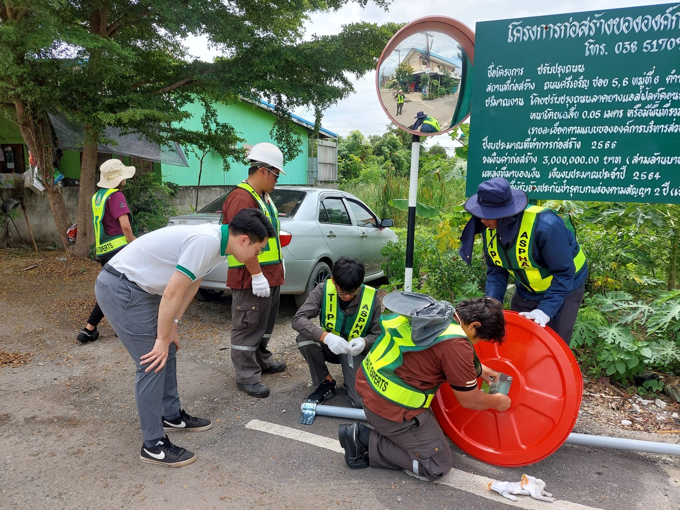 วันที่ 3 ตุลาคม พ.ศ. 2566 โรงงานฯดำเนินการติดตั้งกระจกโค้งทาง ทางเข้า-ออกแล้วเสร็จ เพื่อป้องกันอุบัติเหตุในเส้นทางขนส่งสินค้า มีพนักงานเข้าร่วม 7 คน ผู้มีส่วนได้เสียเข้าร่วม 2 คน และค่าใช้จ่ายในการดำเนินโครงการ รวม 15,455 บาท