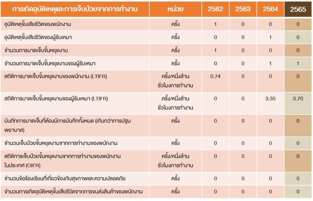 หมายเหตุ : แสดงข้อมูลการเกิดอุบัติเหตุและการเจ็บป่วยจากการทำงานของกลุ่มธุรกิจผลิตยางมะตอยประเทศไทย