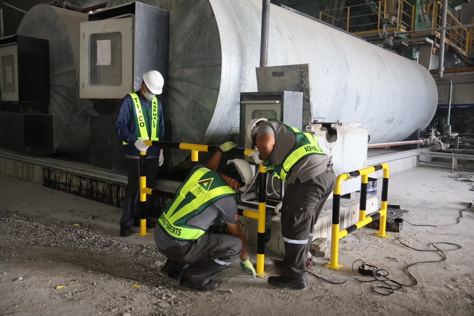 นอกจากเพิ่มความรู้พื้นฐานด้านความปลอดภัยแก่ลูกค้า บริษัทฯยังให้ความสำคัญกับความปลอดภัยในพื้นที่ทำงานและมุ่งปรับปรุงมาตรการความปลอดภัยอย่างต่อเนื่อง โดยทางโรงงานพระประแดงได้มีส่วนร่วมในการเพิ่มความปลอดภัยในพื้นที่ทำงานของบริษัทลูกค้า โดยมีการไปติดตั้งการ์ดกันชน ซึ่งเป็นพื้นที่คับแคบและไม่มีสัญญาณเตือนอันตราย โครงการนี้มีเป้าหมายเพื่อเพิ่มความปลอดภัยและลดความเสี่ยงอุบัติเหตุ และตอนสนองความต้องการของลูกค้า โดยได้มีการแบ่งปันข้อมูลความเสี่ยงในแต่ละพื้นที่ทำงานและเส้นทางขนส่ง
