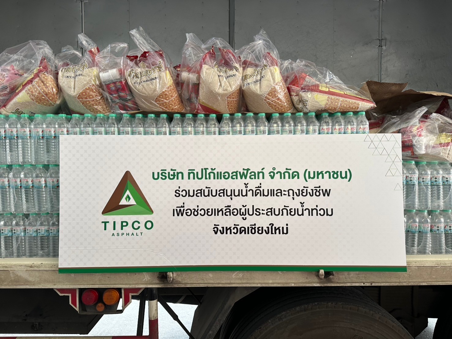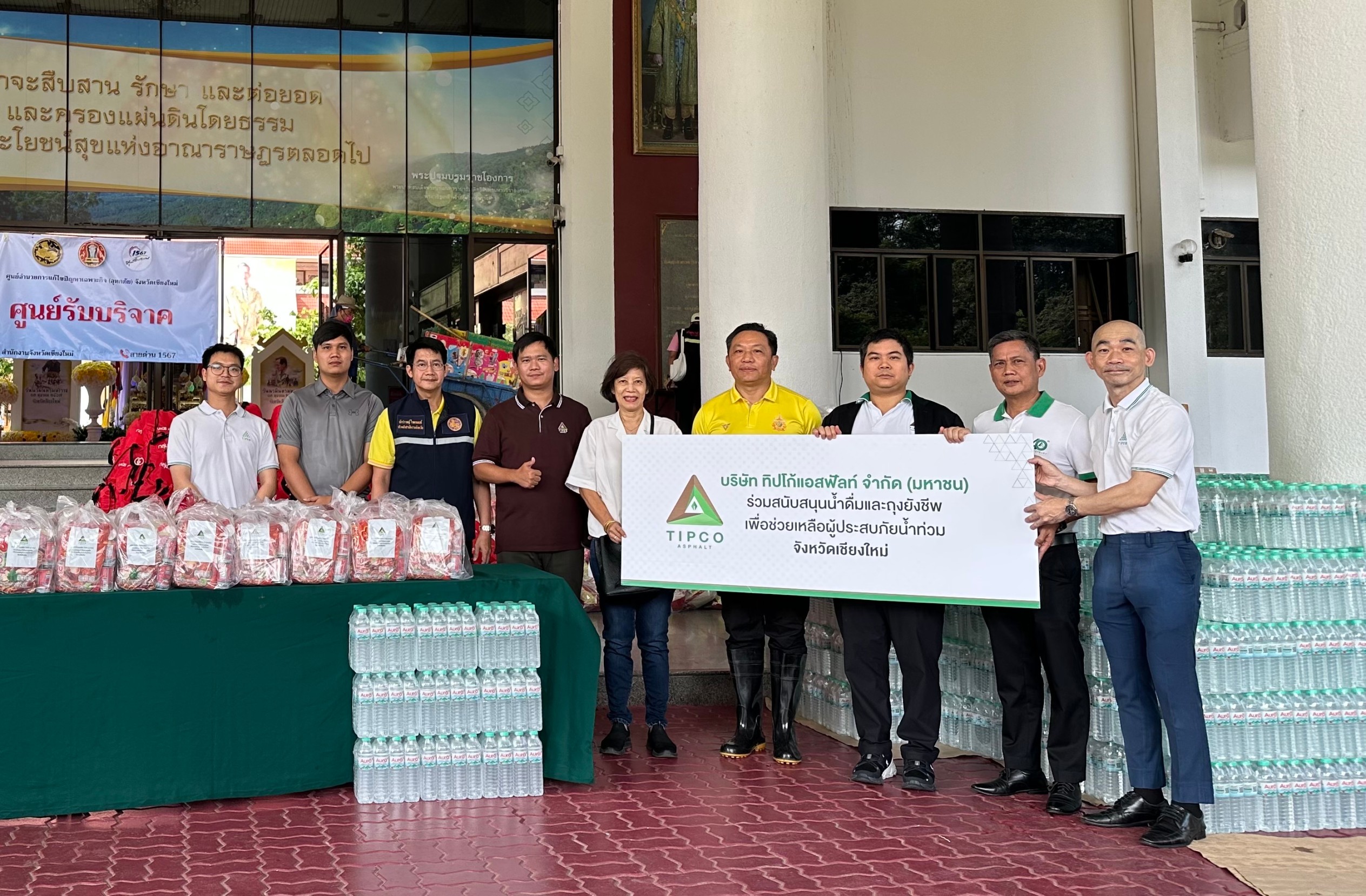 บริษัท ทิปโก้แอสฟัลท์ จำกัด (มหาชน) ร่วมกับพันธมิตรทางธุรกิจบริจาคน้ำดื่มและถุงยังชีพเพื่อช่วยเหลือผู้ประสบภัยน้ำท่วมในจังหวัดเชียงใหม่