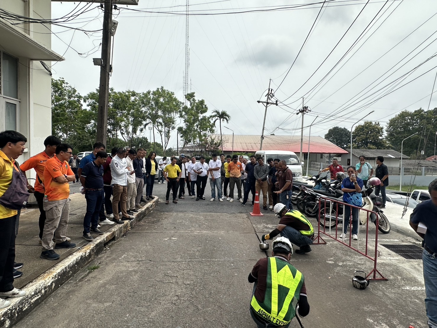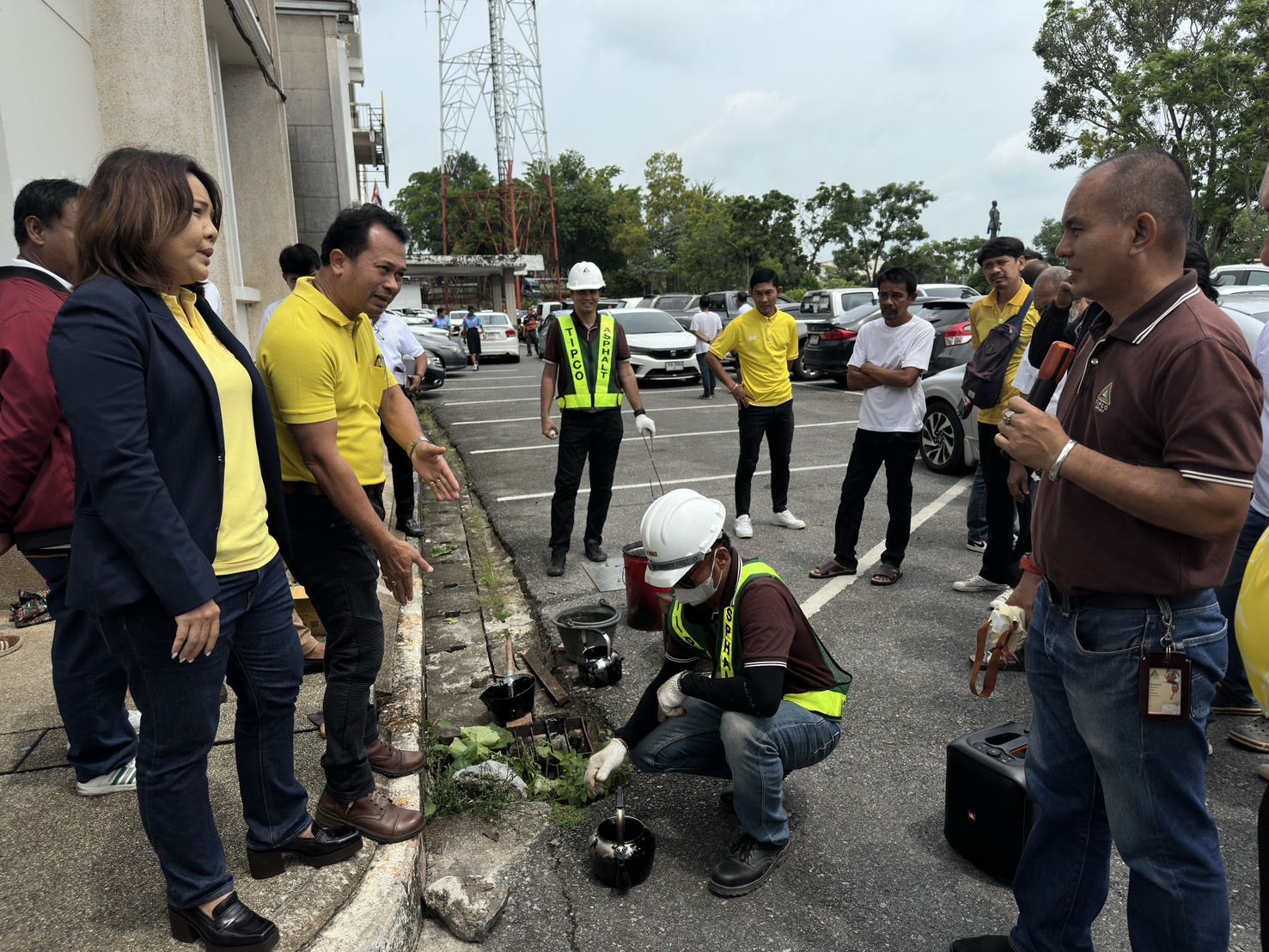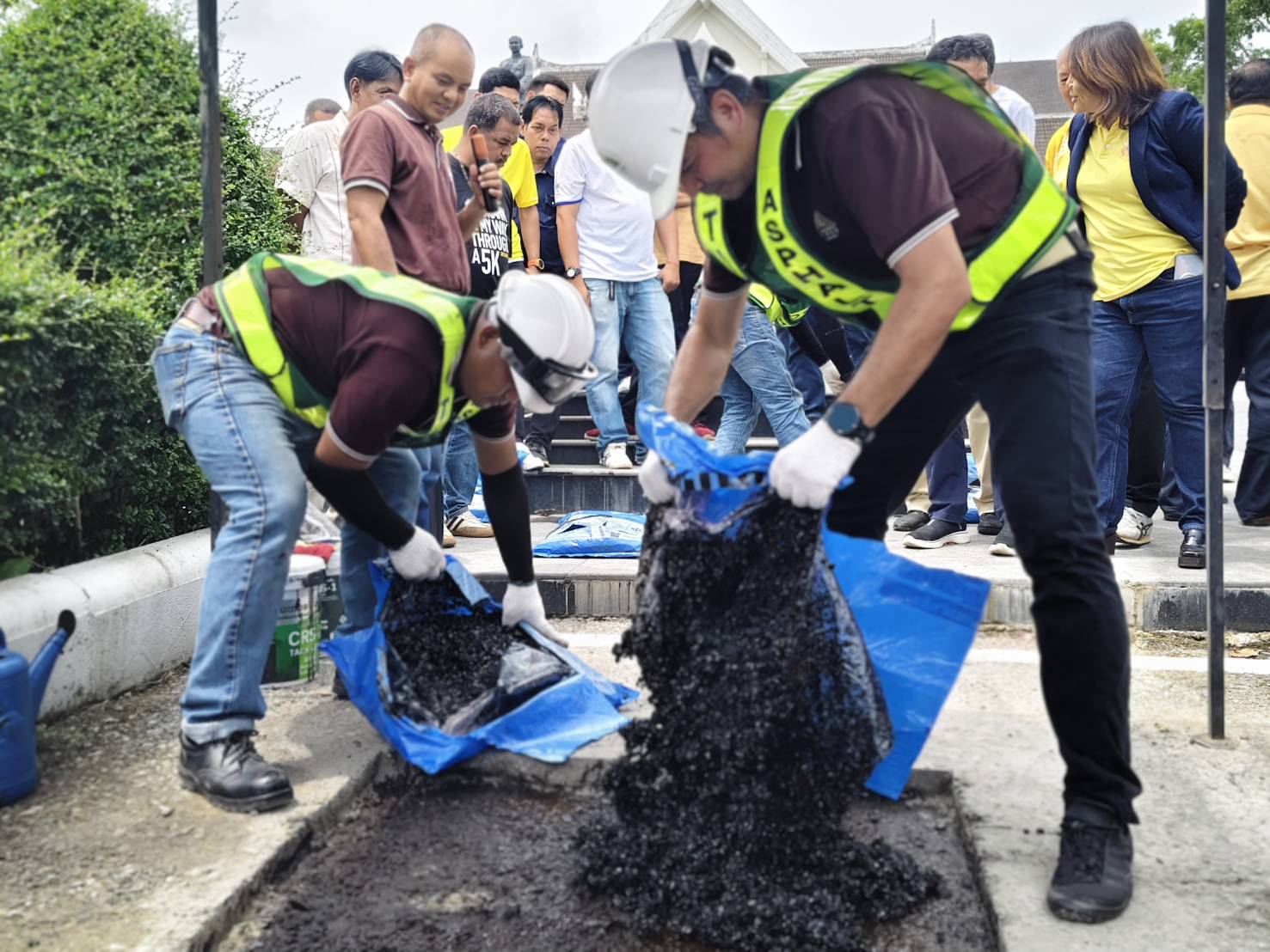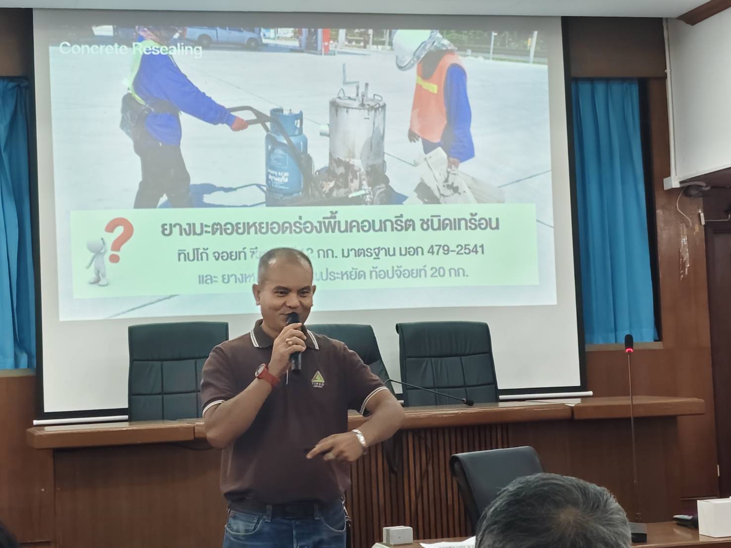 Mr. Boonleng Lohsathapornpipit, Chief Executive of Trang PAO, who presided over the opening ceremony, honored the training session. The training featured both theoretical and hands-on components, covering best practices and standards in road surface maintenance using asphalt. Practical demonstrations included pothole repair using Tipco Premix, concrete joint sealing, and the application of Tipco Joint Sealer to address joint issues in the concrete pavement of the Trang PAO parking area.