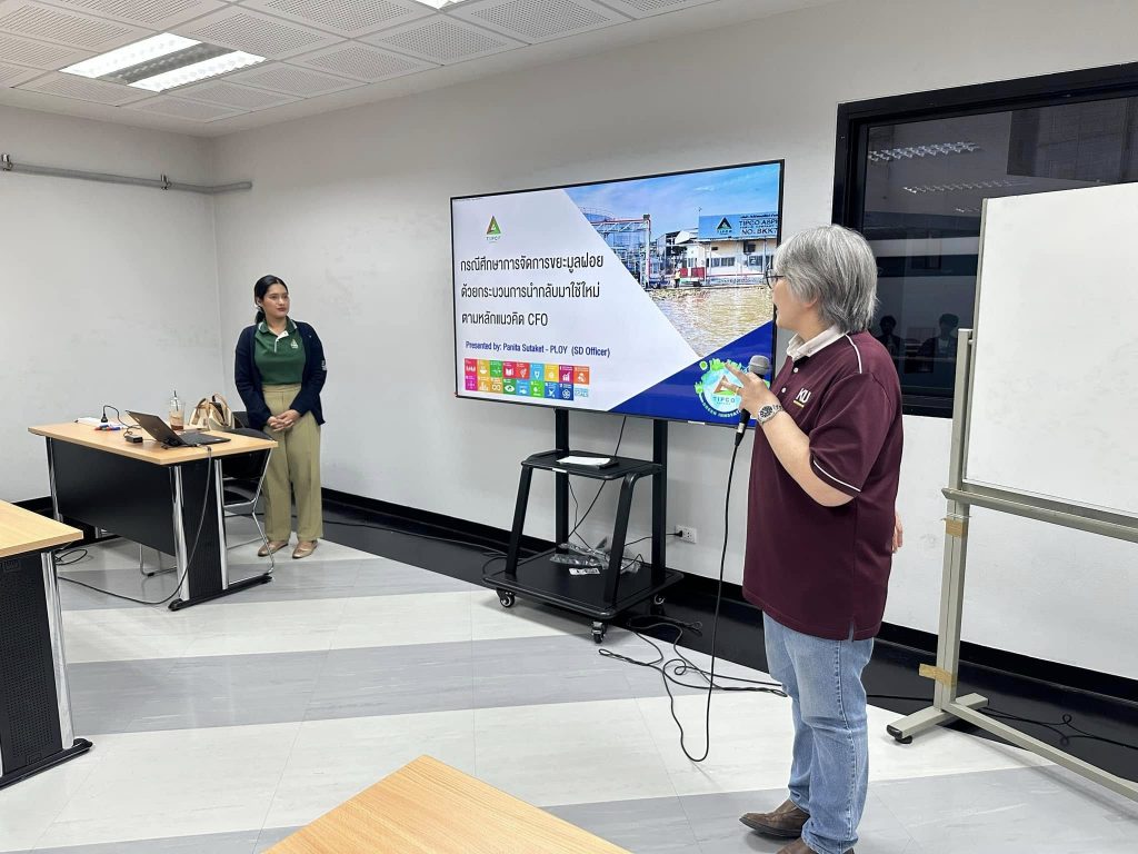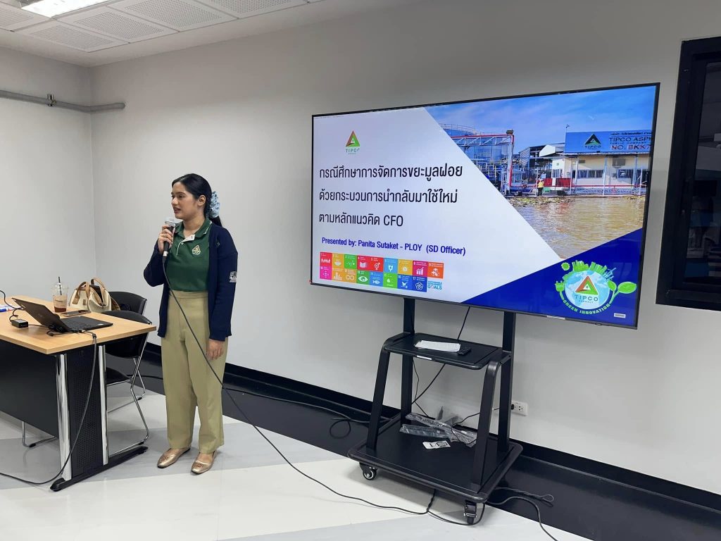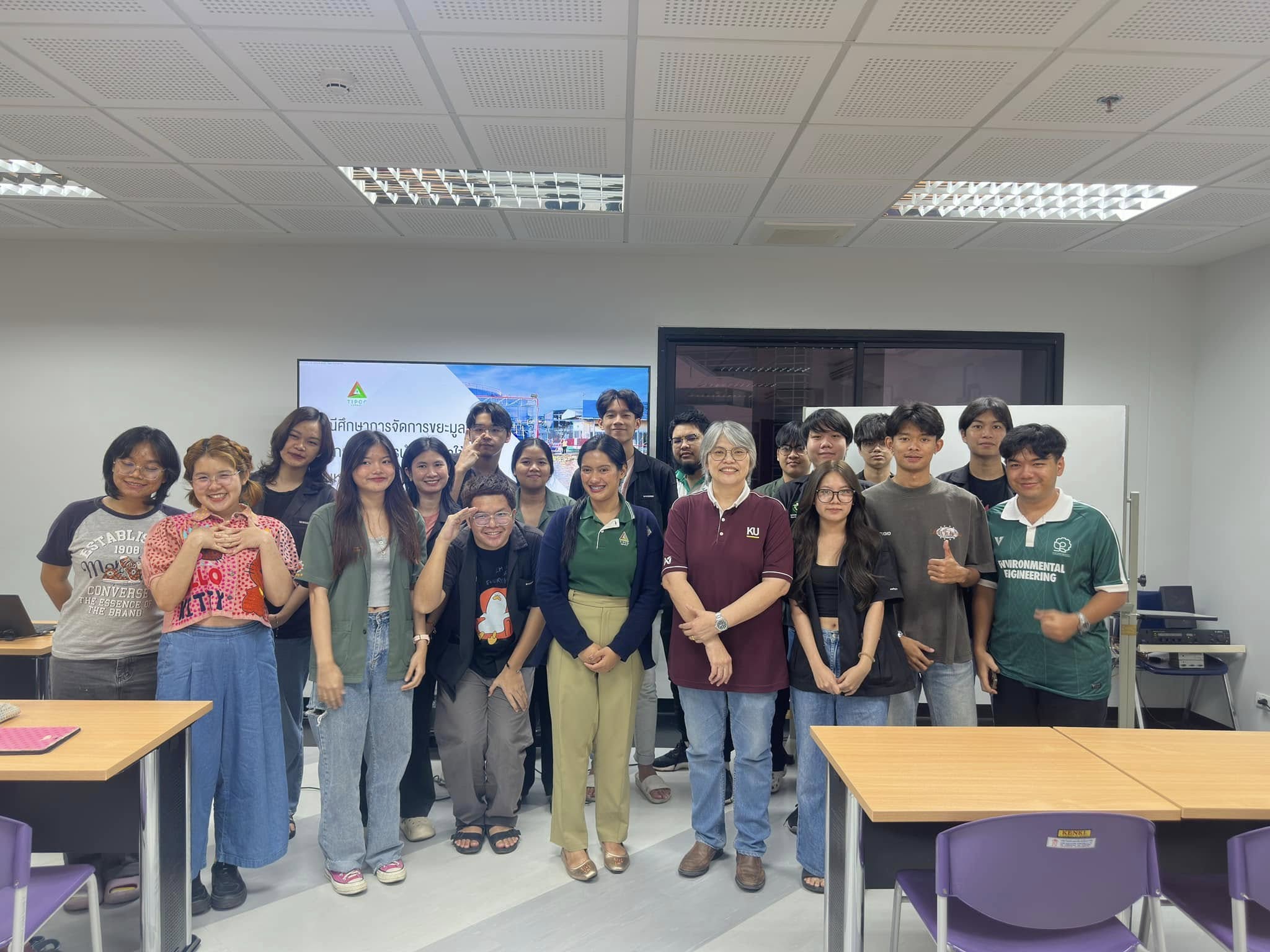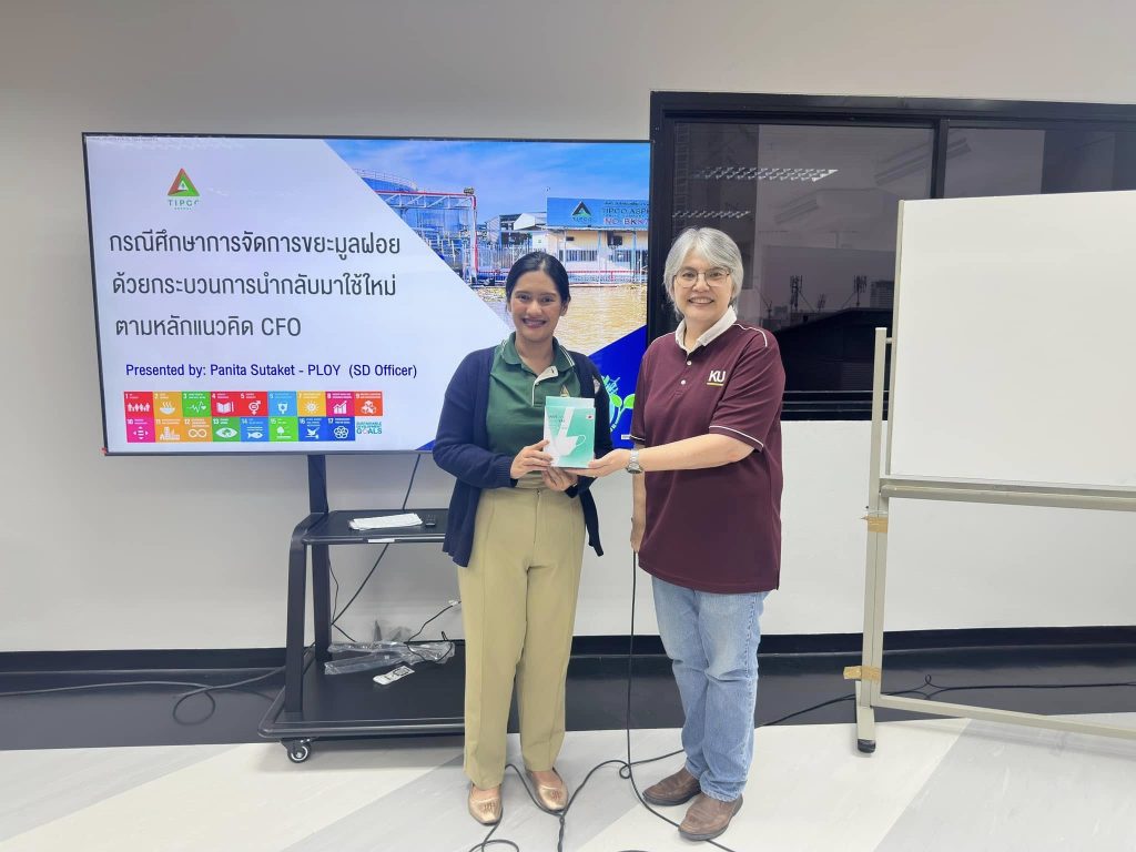 เมื่อวันที่ 25 กุมภาพันธ์ 2568 ทางผู้ช่วยศาสตราจารย์ ดร.พีรกานติ์ บรรเจิดกิจ ได้เชิญนางสาวปณิตา สุตะเขตร์ เจ้าหน้าที่พัฒนาความยั่งยืน (โรงงานพระประแดง) เป็นวิทยากรในการให้ความรู้นิสิตชั้นปีที 4 คณะวิศวกรรมสิ่งแวดล้อม คณะวิศวกรรมศาสตร์ มหาวิทยาลัยเกษตรศาสตร์ ในเรื่องของการจัดการขยะมูลฝอยด้วยกระบวนการนำกลับมาใช้ใหม่ภายใต้แนวคิด CFO (Carbon Footprint Organization) และการจัดการพัฒนาสิ่งแวดล้อมอย่างยั่งยืนของบริษัท ทิปโก้แอสฟัลท์ จำกัด (มหาชน) รวมไปถึงการเตรียมความพร้อมในการทำงานของนิสิตก่อนจบการศึกษา ซึ่งจากผลการประเมินความพึงพอใจของนิสิตให้ความสนใจในกิจกรรมเป็นอย่างมากและให้ความร่วมมือในกิจกรรมที่จัดขึ้น
