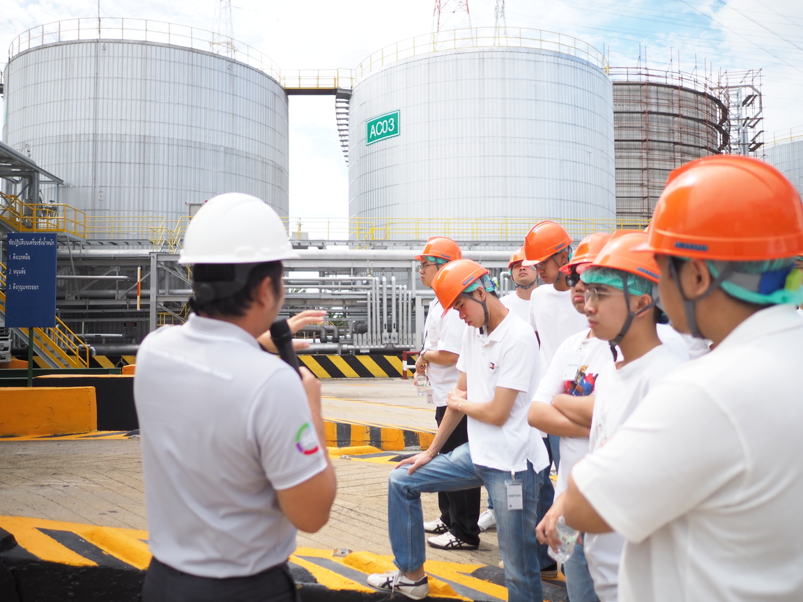 คณะนักศึกษาได้รับฟังการดำเนินงานของทิปโก้แอสฟัลท์ ทั้งในด้านเทคนิคการบริหารจัดการขนส่ง การผลิตผลิตภัณฑ์แอสฟัลต์ที่ทันสมัย รวมถึงการบริหารจัดการคลังเก็บผลิตภัณฑ์แอสฟัลต์ขนาด 36,000 ตัน และกระบวนการตรวจสอบคุณภาพสินค้า นอกจากนี้ ยังได้รับความรู้เพิ่มเติมด้านเทคโนโลยีแอสฟัลต์คอนกรีตเพื่อความยั่งยืน